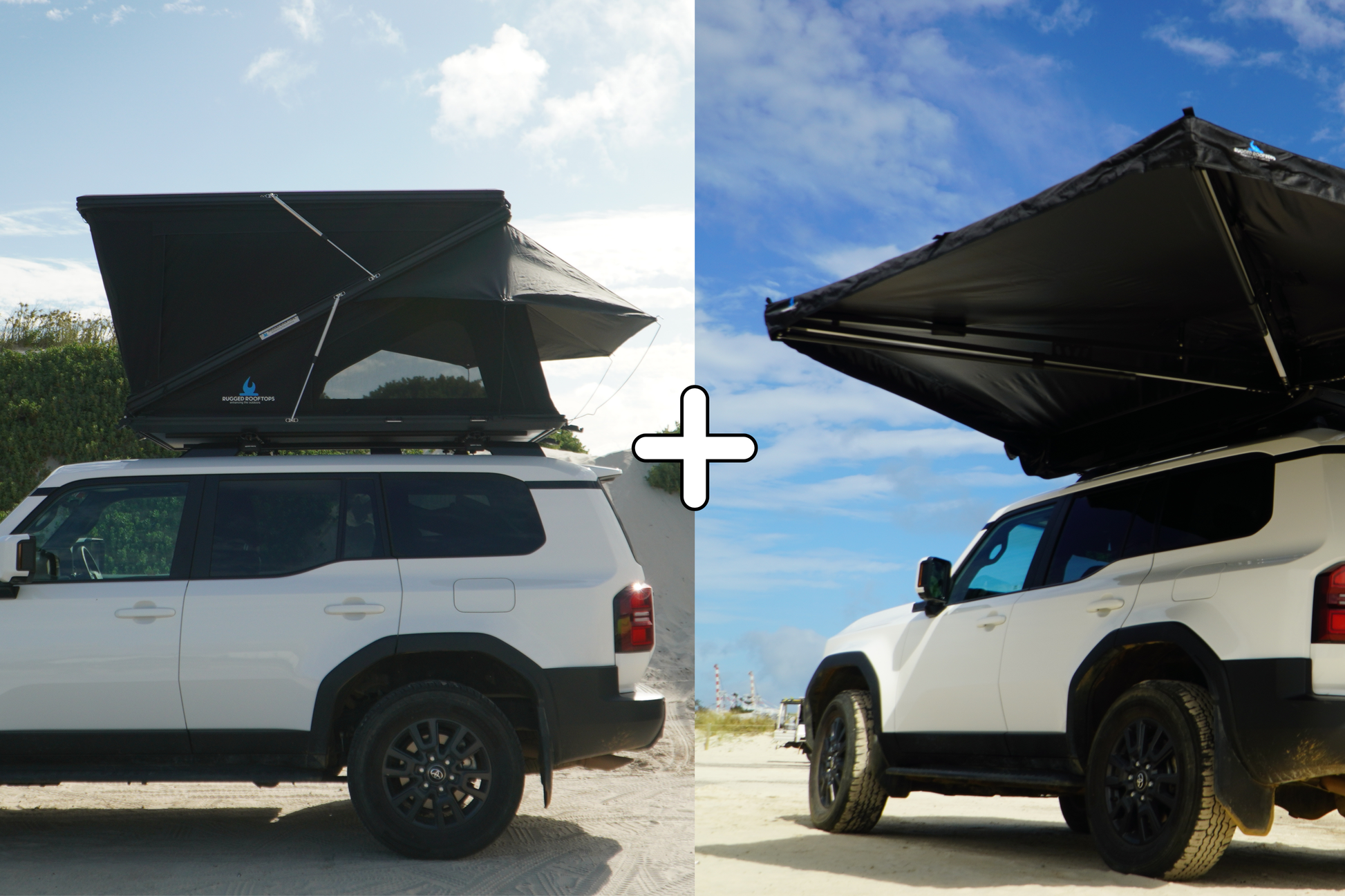 Our standard combo deal includes our Rugged Rooftop SLIM and our 270° Awning. Save $700 with this combo deal.
